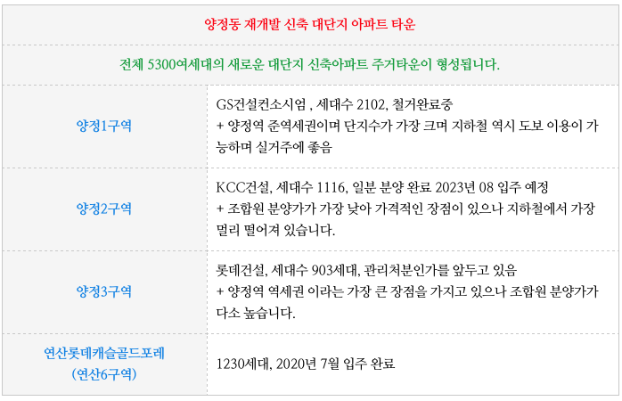 양정동 재개발로 인하여 들어서는 새로운 신축 주거 아파트 단지 규모를 간략히 정리해 드립니다