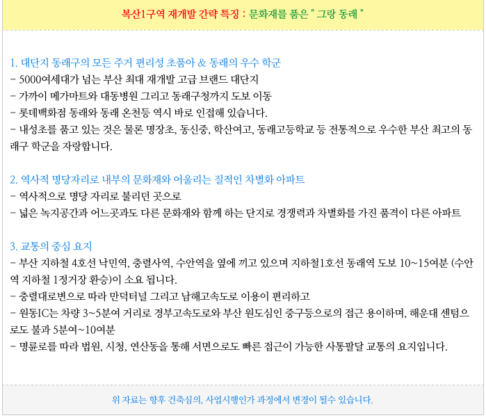 부산에서 실거주 환경 및 학군이 우수한 동래구의 중심에 위치해 있다는 것이 가장 큰 장점입니다.