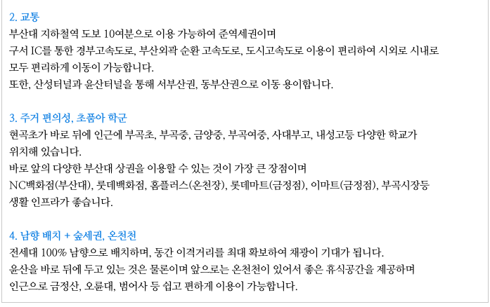 - 인근의 부산대 상권의 편리함과 현곡초등학교를 옆에둔 초품아이기도 하며