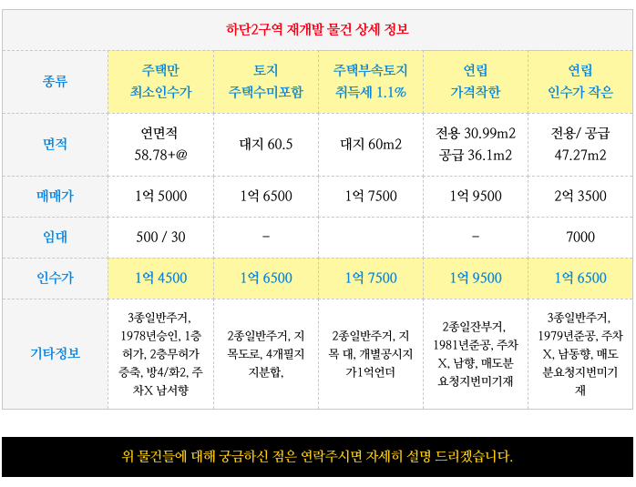 하단2구역 재개발 예정지의 물건 정보 업데이트 해 드리고 이어서 설명 드리겠습니다.