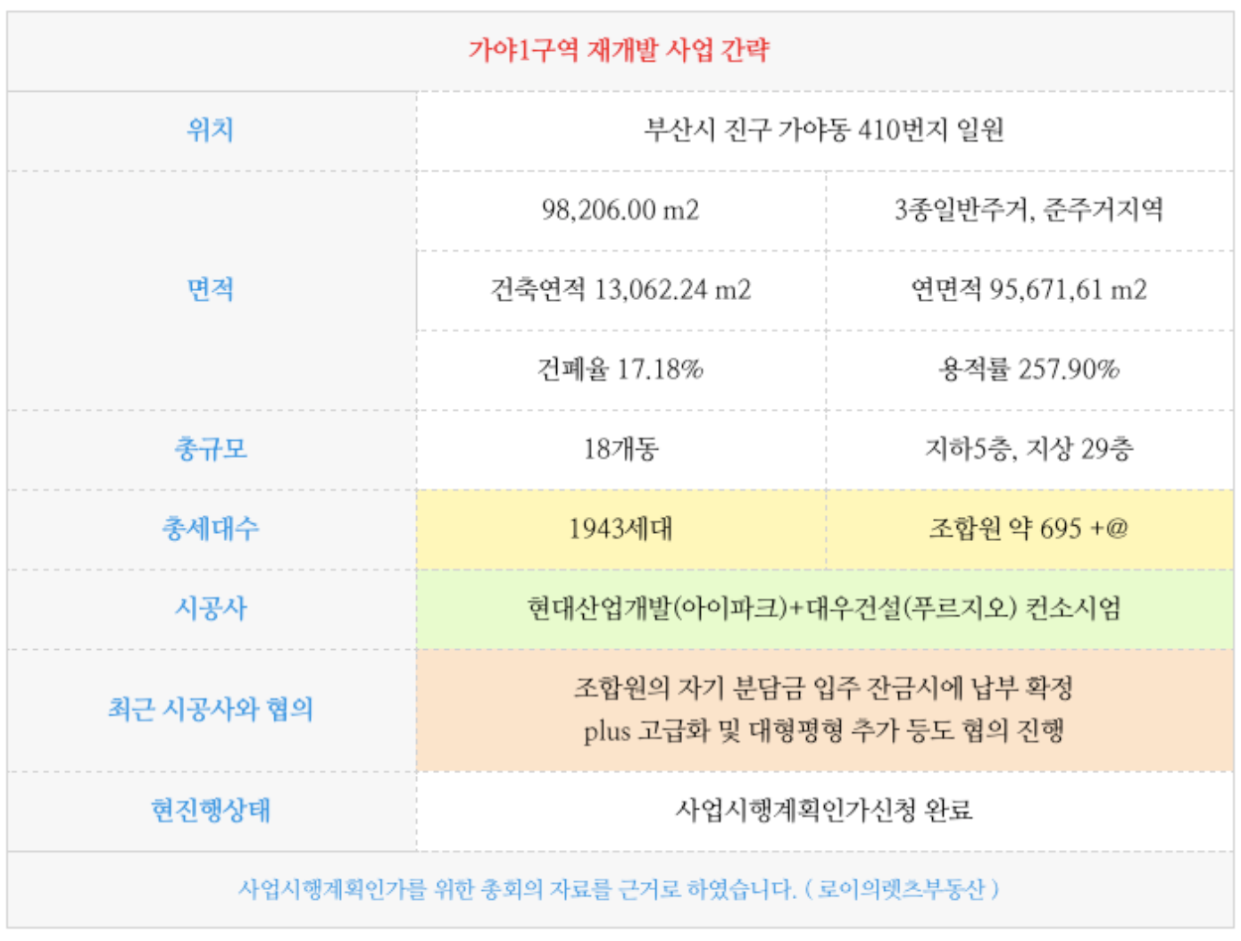 가야1구역의 최근소식 정리 입니다.