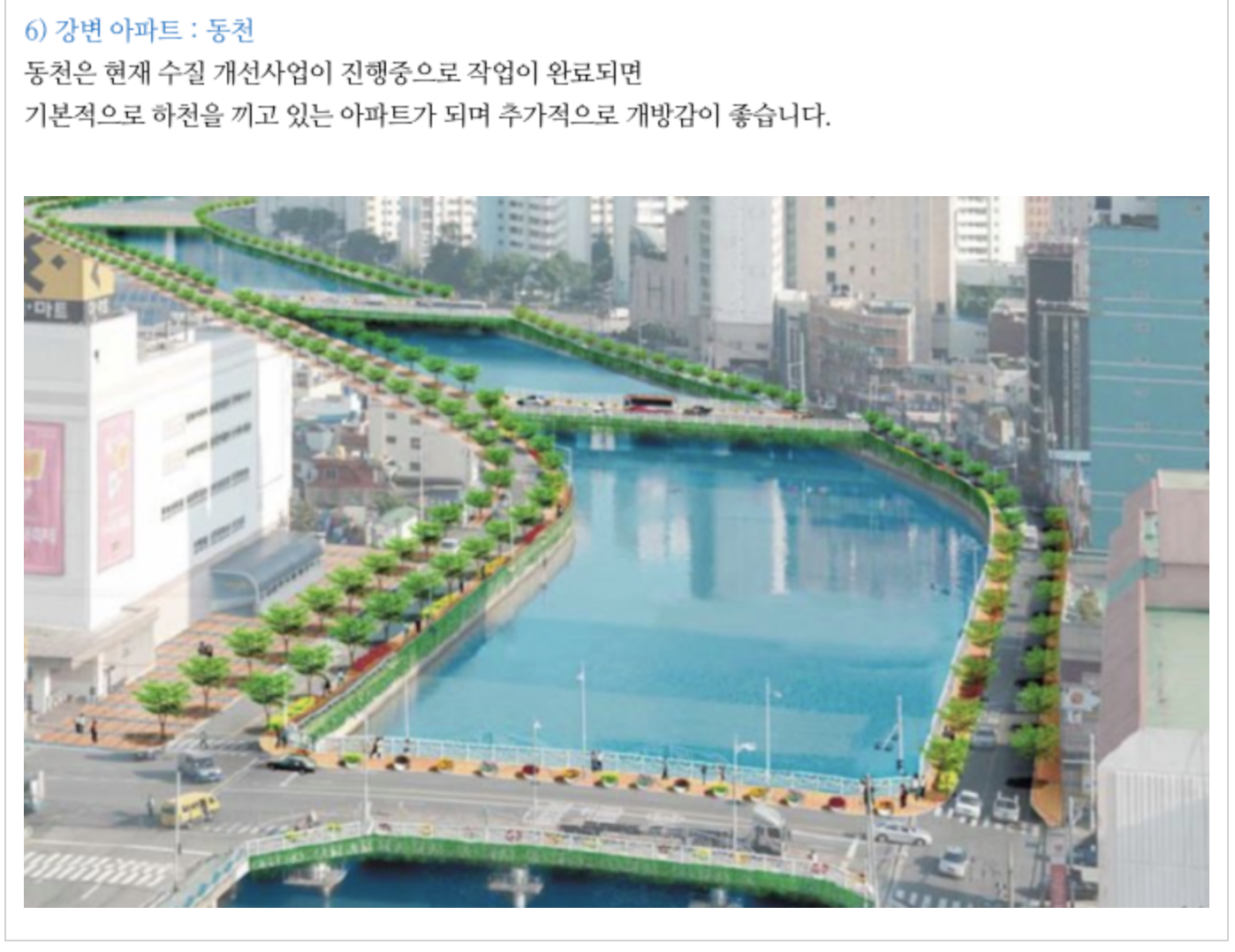 바로 옆으로 동천을 끼고 있어 개방감 역시 대단히 좋습니다.