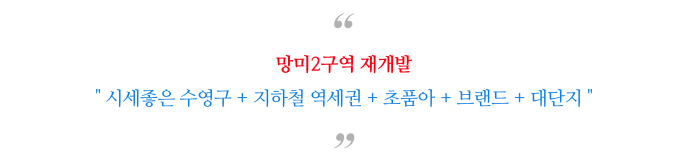 망미2구역에서 광안5(7)구역으로의 명칭 변경 역시 논의하고 있어 기대감을 더 높이고 있습니다.