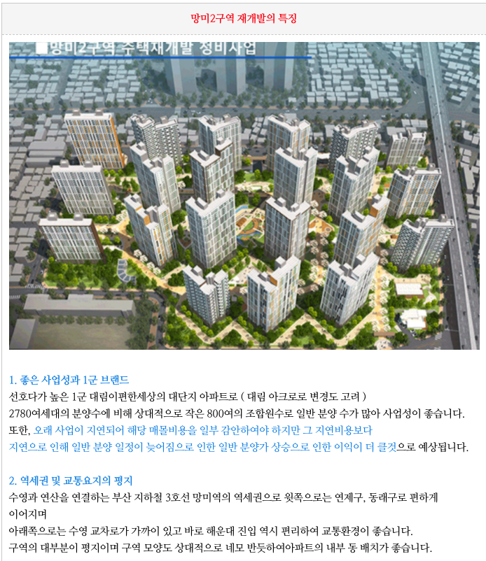 망미2구역 재개발에 관심이 있으신 분들은 연락주시면 자세히 설명드리곘습니다.