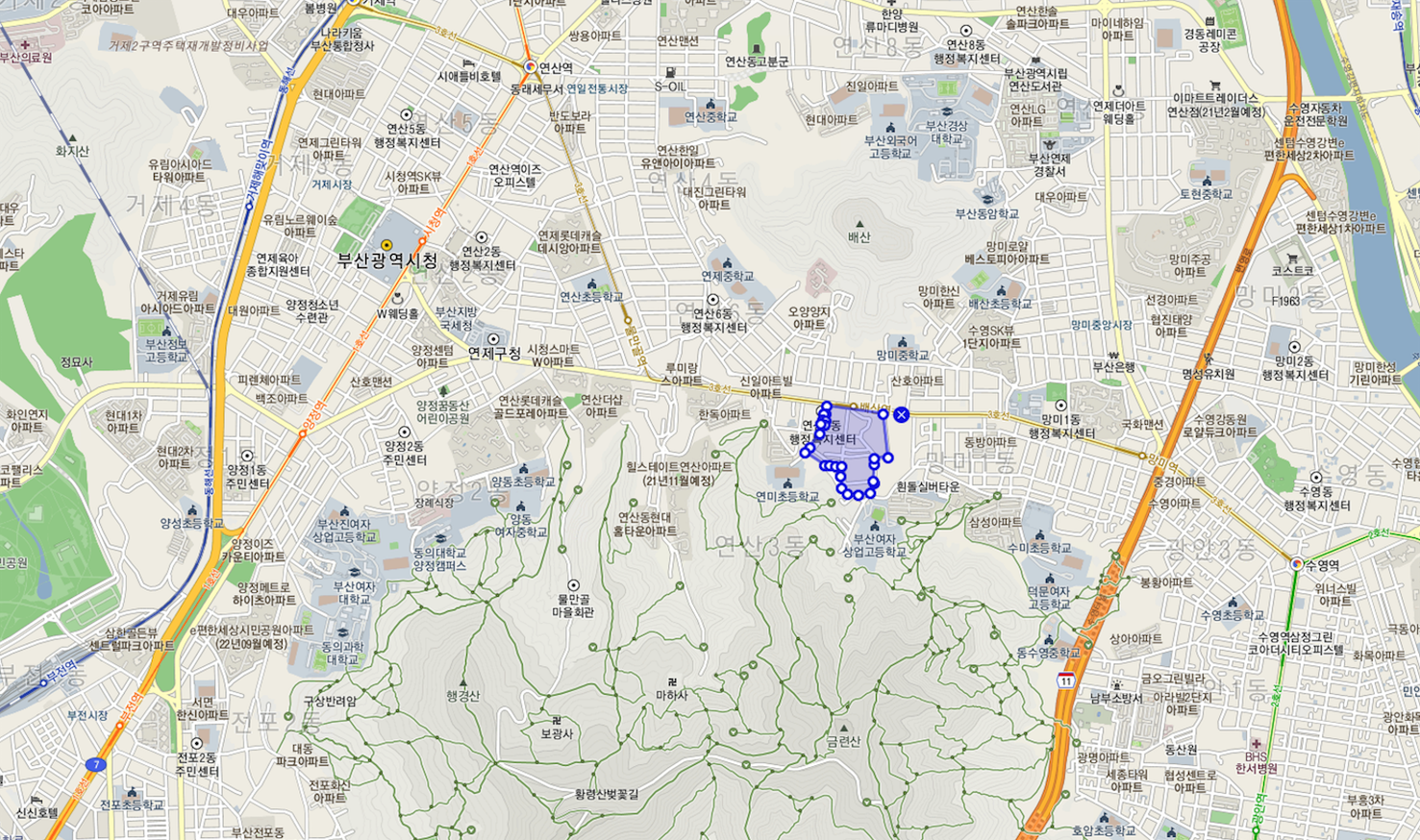 양정에서 망미동으로 이어지는 연수로 일대가