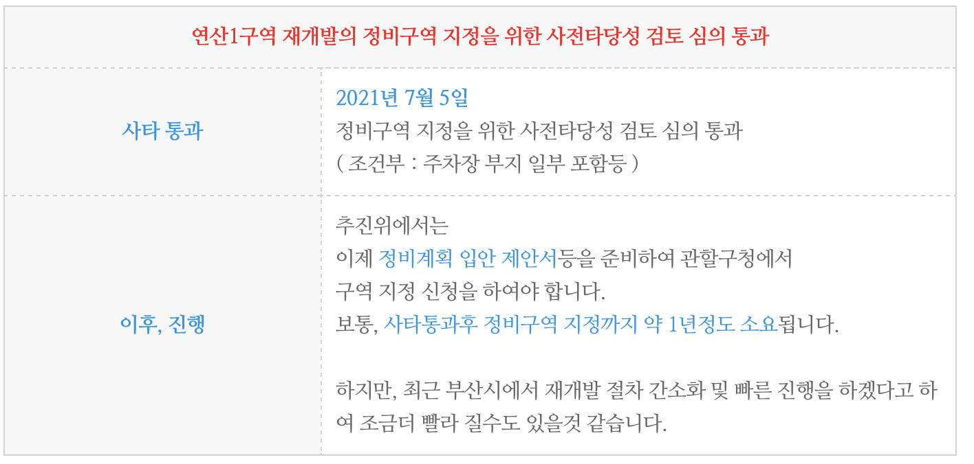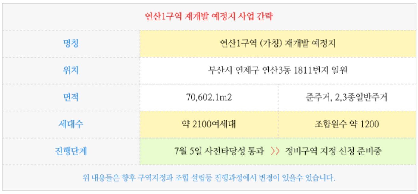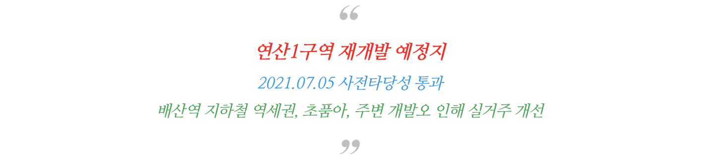 사전타당성통과! " (가칭) 연산1구역 재개발 " 소식과 물건
