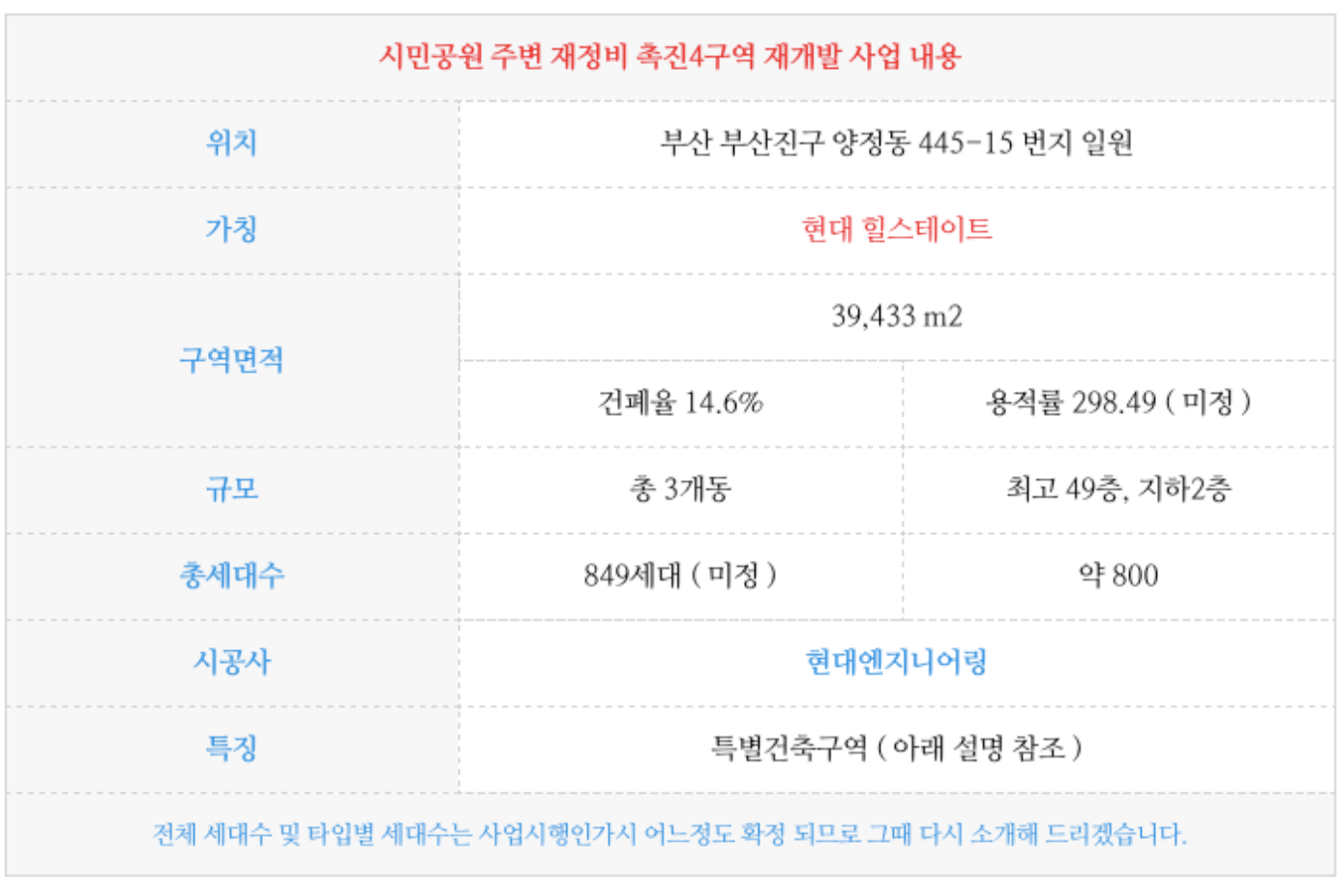 부산 중심도심에 위치하고 시민공원 남서향 방향으로 보는 재개발 구역으로 전세대 시민공원뷰 배치를 한다고 하며