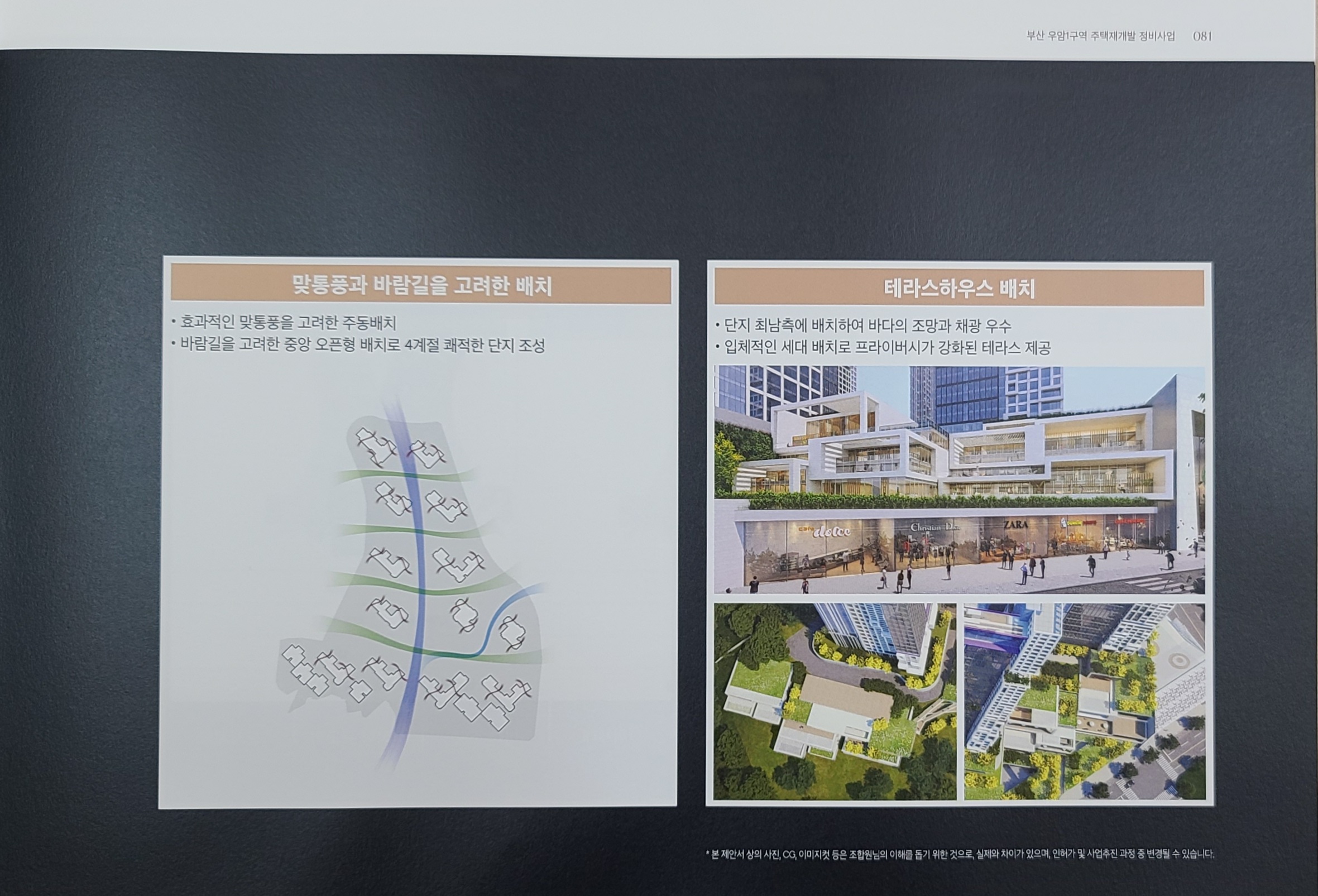 시공사 측의 제안안 ( 칼리슨 외관 특화와 조합원 제공품목 ) 부터 먼저 소개해 드리겠습니다.