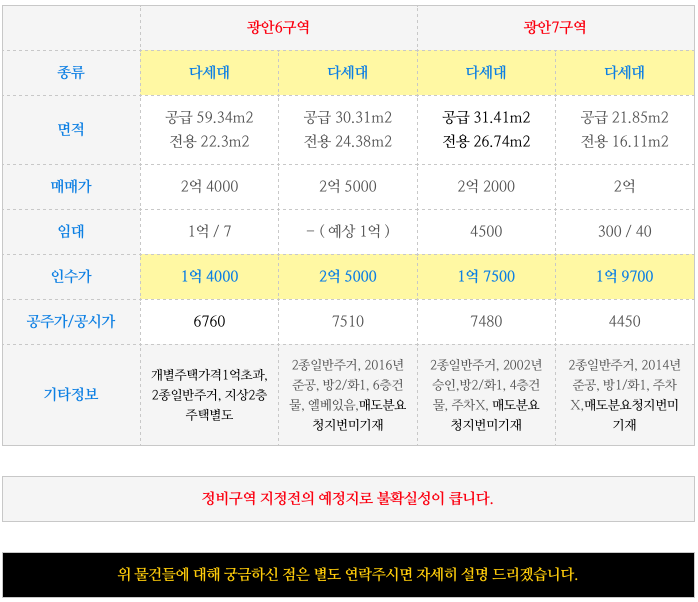 수영구 광안동 각 예정지 구역별 물건 정보를 소개해 드리겠습니다.