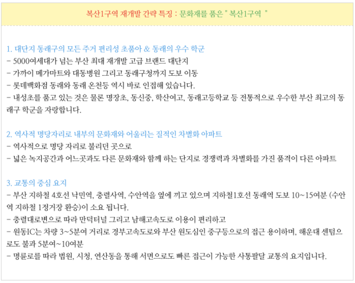 동래구 복산1구역 재개발의 진행상황등 추가적인 정보는 아래 페이지를 확인 부탁드립니다.