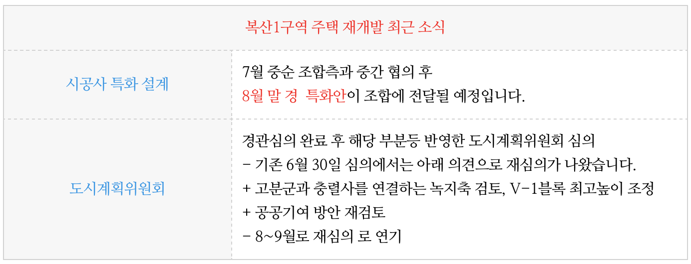 동래구 복산1구역 재개발의 지난 7월의 진행 소식 입니다
