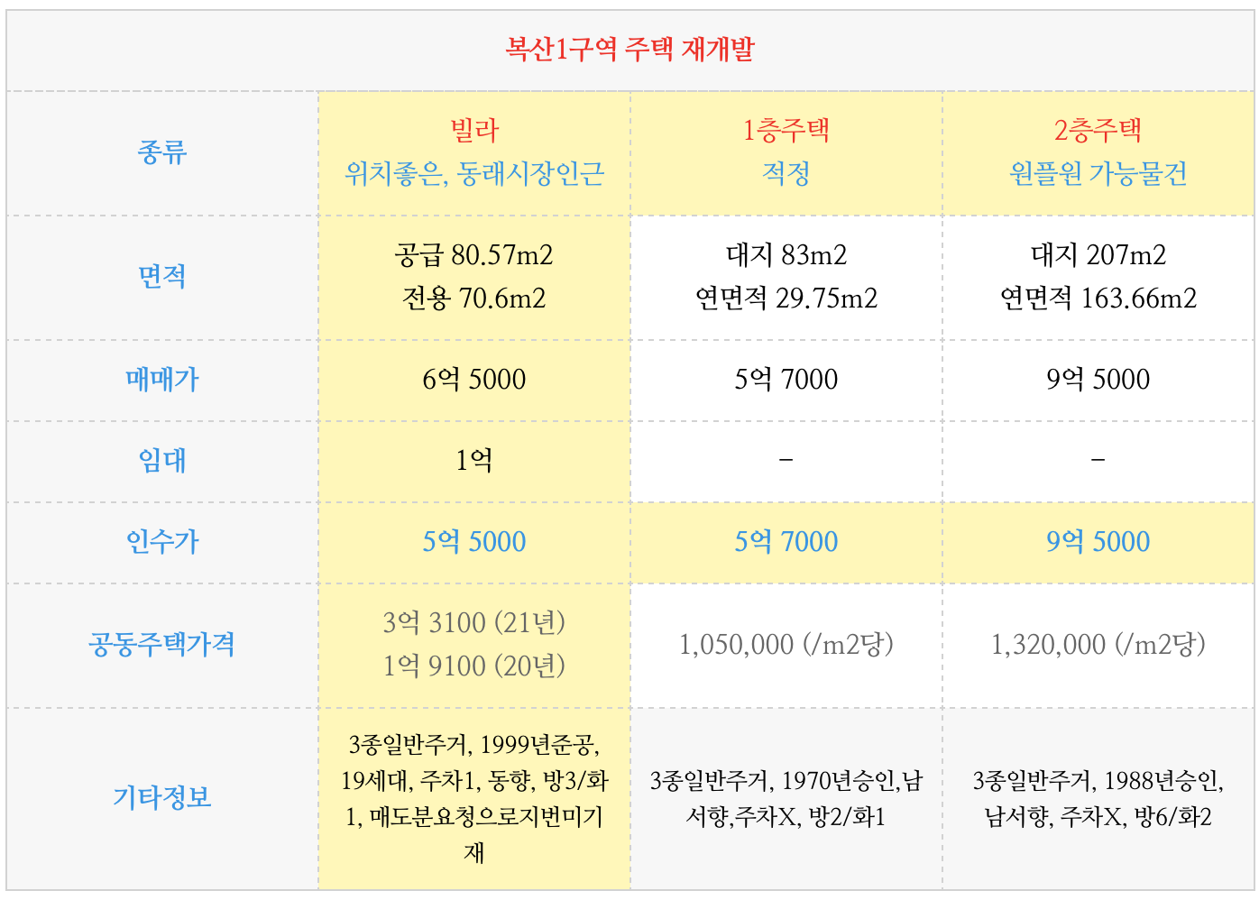 복산1구역 재개발 위치좋고 가격착한 빌라