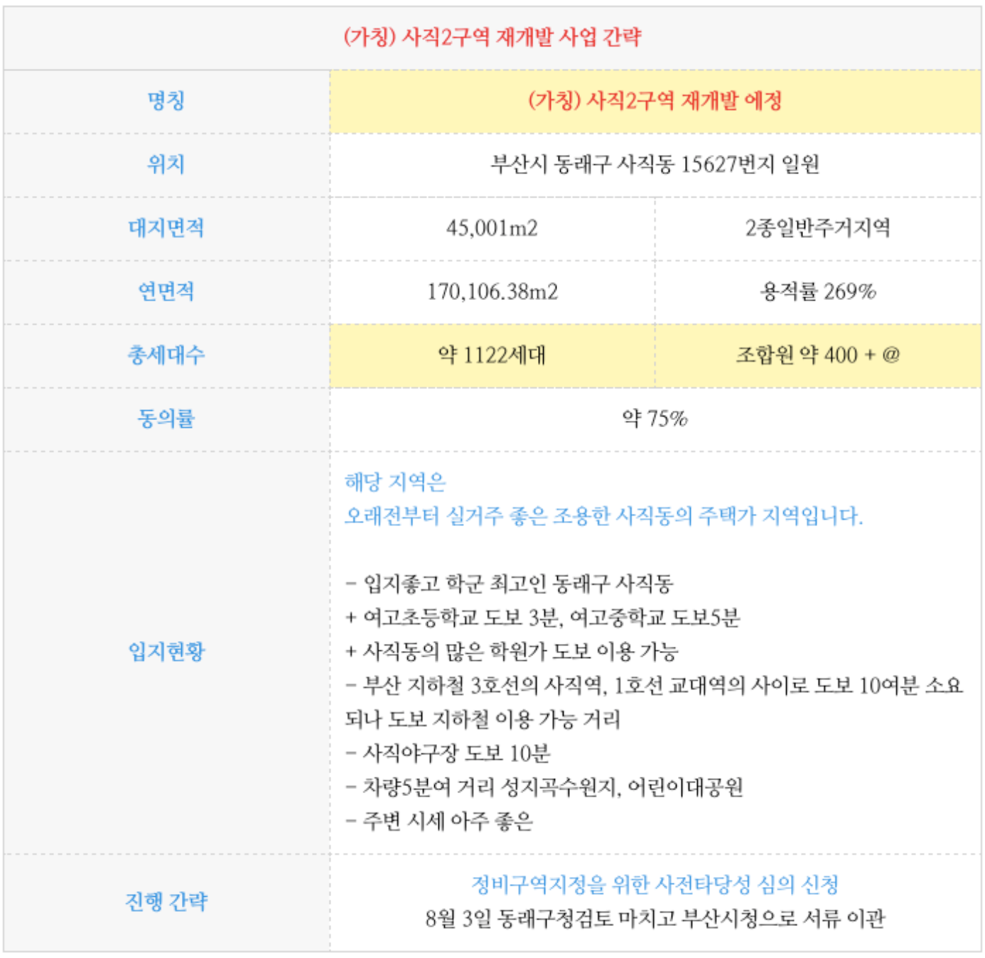 동래구 입지좋은 사직동 (가칭) 사직2구역 재개발 예정지 소개 및 물건 정보를 드리도록 하겠습니다.