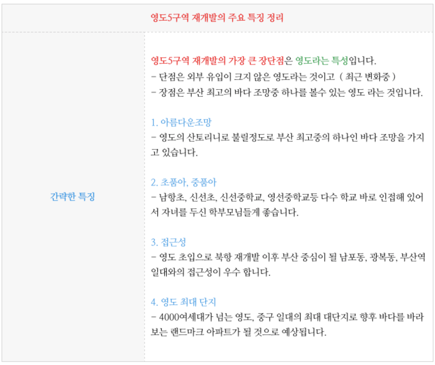 - 단점은 외부 유입이 크지 않은 영도라는 것이고 ( 최근 변화중 )