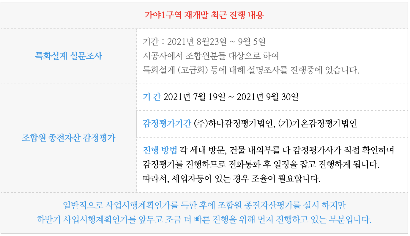 고급화 및 대형 평형 세대수 추가에 대해서도 최근 설문조사를 실시하는등 사업시행계획인가 이후