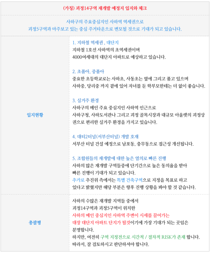 사하중심지 괴정14구역 재개발(예) 진행상황과 현매물