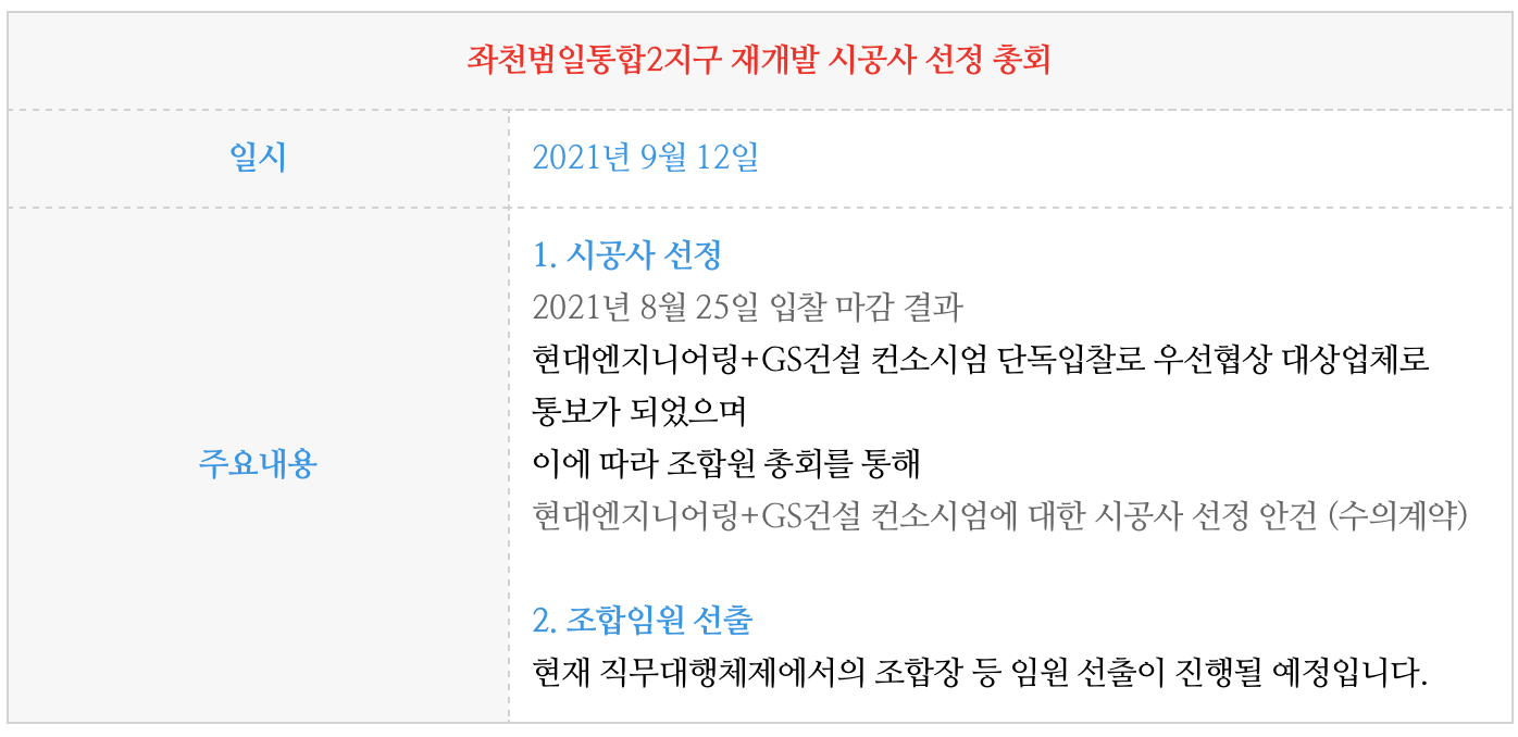 드디어 시공사 선정을 위한 총회를 앞두고 있습니다.