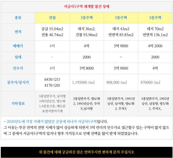 기대되는 서금사5구역 재개발 매물(빌라/주택등) 업데이트 +추가 서금사6