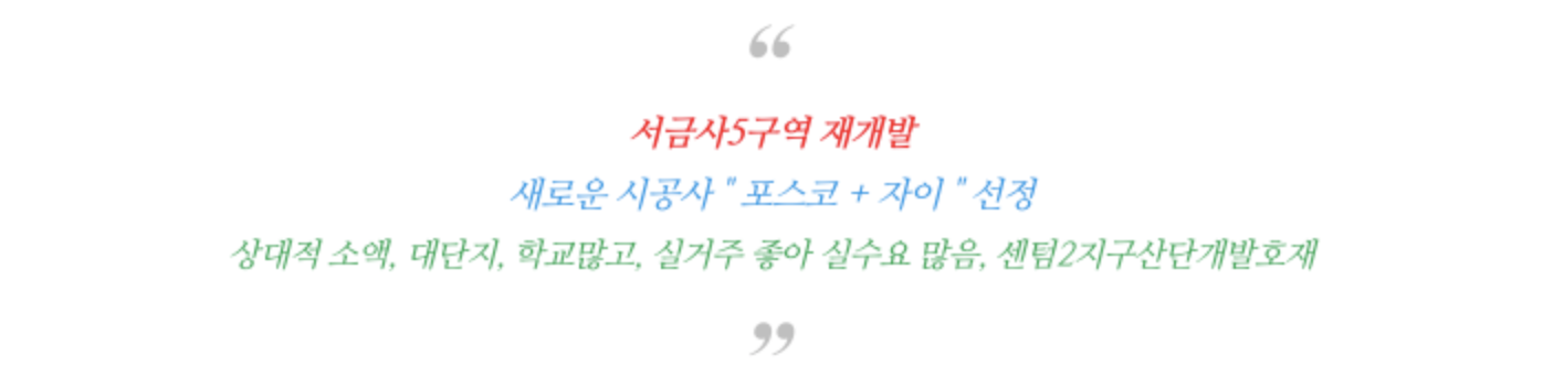 - 서금사5구역에 비해 시세가 조금 낮은 장점을 가지고 있습니다.