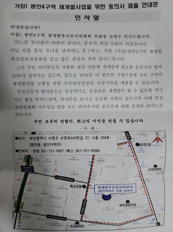 (가칭) 광안4구역 재개발 예정지에 궁금하신 점은 편하게 문의 주십시오.