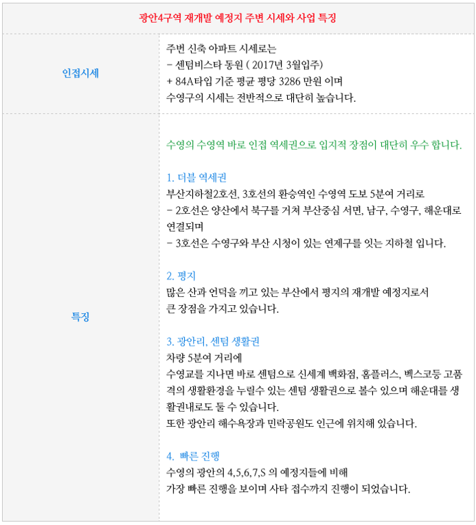 사타신청 " 광안4구역 재개발 (예) " 소개와 물건