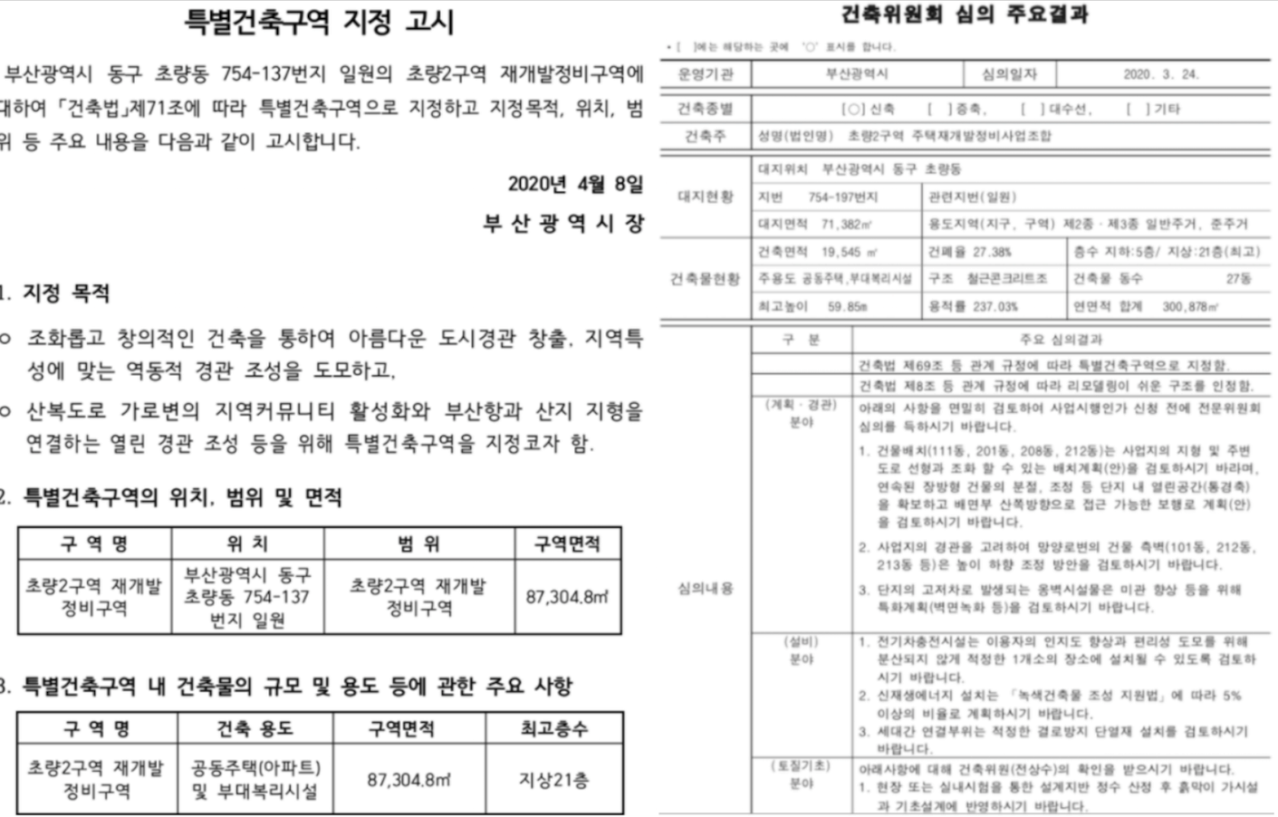 북항 바라 보는 초량2구역 재개발의 진행상황과 타입별세대수, 특별건축구역등 추가 설명은 아래 페이지를 참고 부탁드립니다.