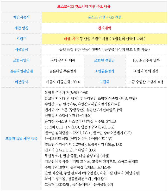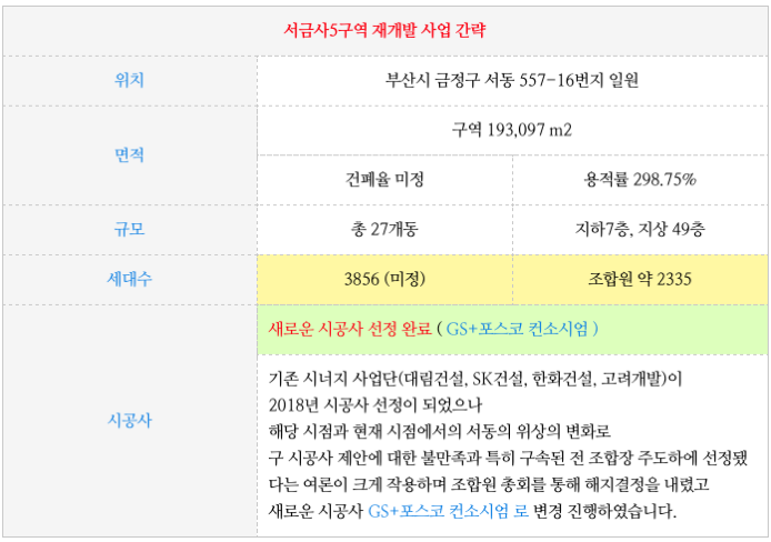 서금사 5구역 재개발의 시공사인 포스코와 GS의 제안 내용 입니다..