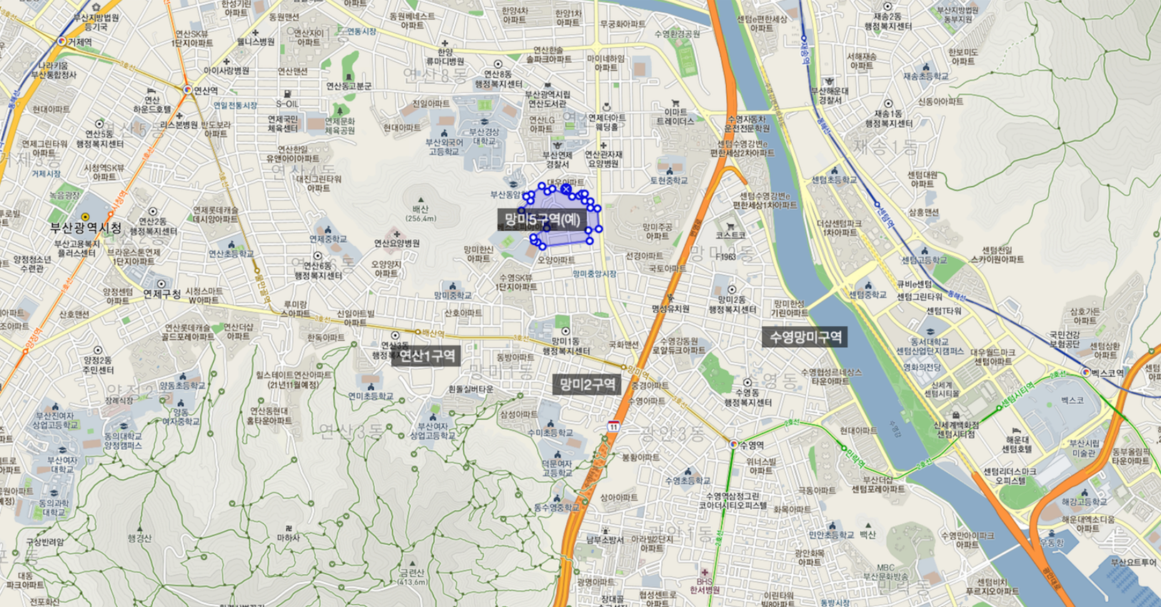 수영구 망미5구역 재개발 예정지의 입지적 특성을 간략히 정리하였습니다.