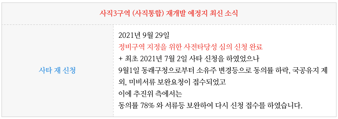 사직3구역 (사직통합) 재개발 진행 상황과 물건 정보를 업데이트 해 드리겠습니다.