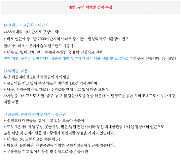 대연3구역 재개발 간략한 특징을 간략히 정리 해드립니다.