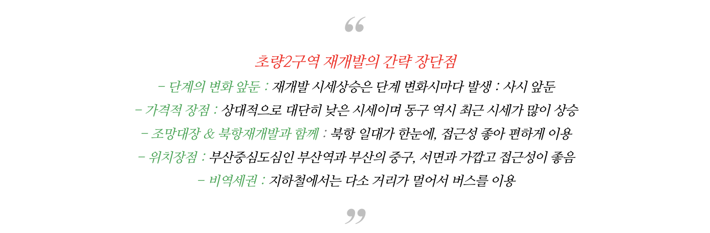 향후 초량, 수정동 등 일대가 크게 변화될 예정으로 초량2구역 역시 기대치를 더 높이고 있습니다.