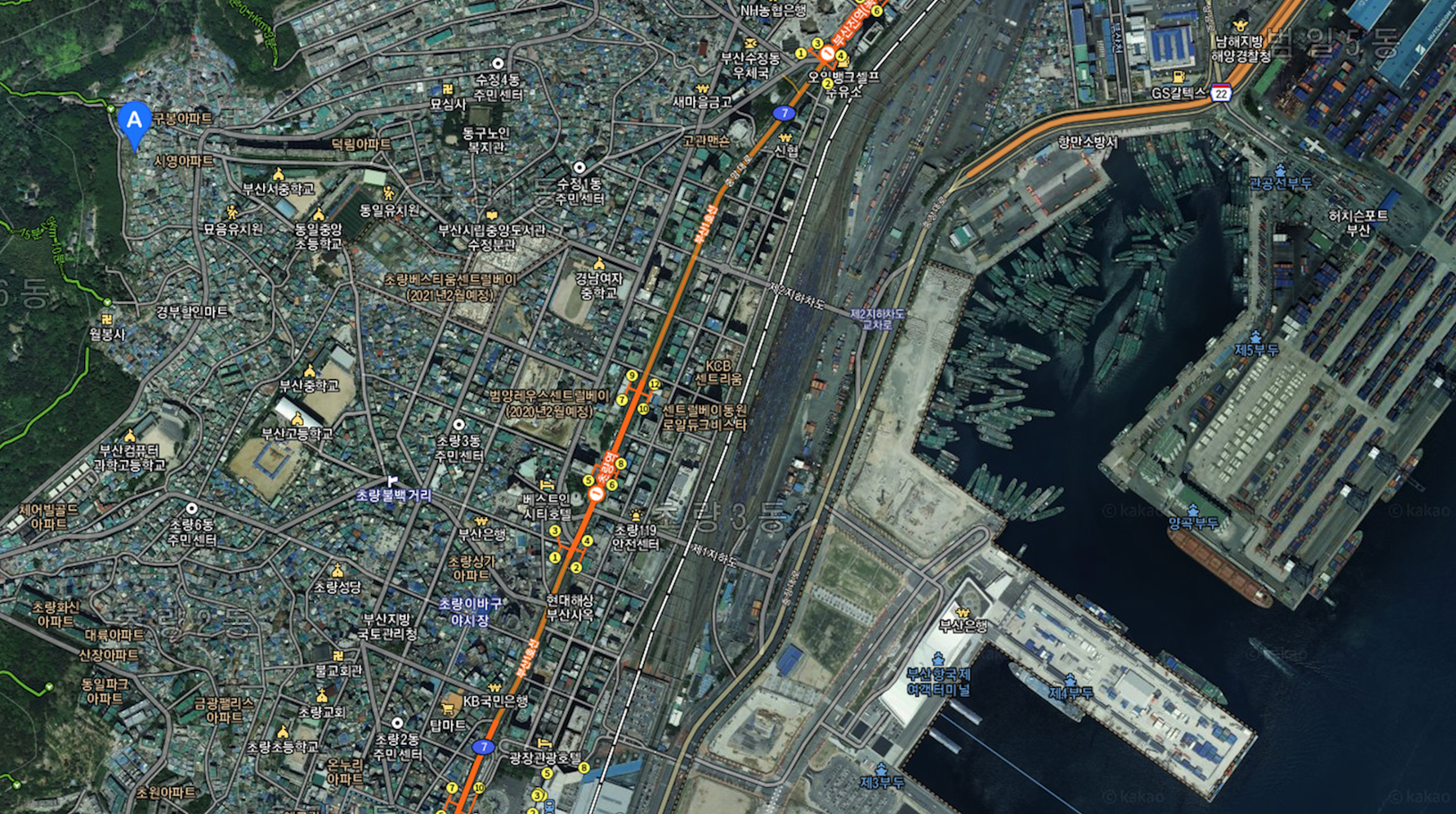 부산을 관통하는 지하철1호선은 도보로 이용하기에는 거리가 있지만 가까이 있기도 하고
