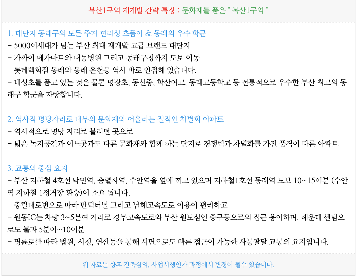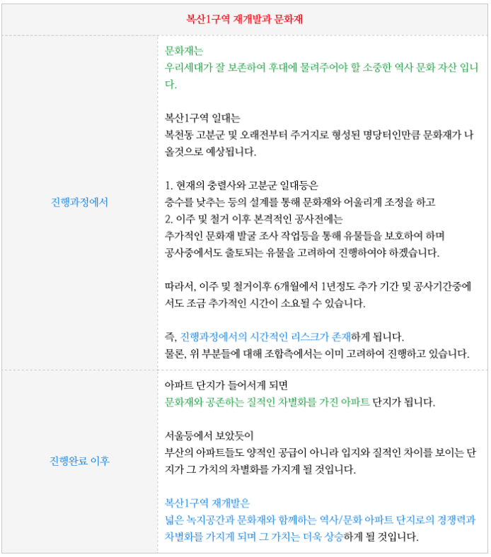 - 복산1구역 재개발은 그 입지와 규모에 비해 다른 구역들과 비교하여 문화재등이유로