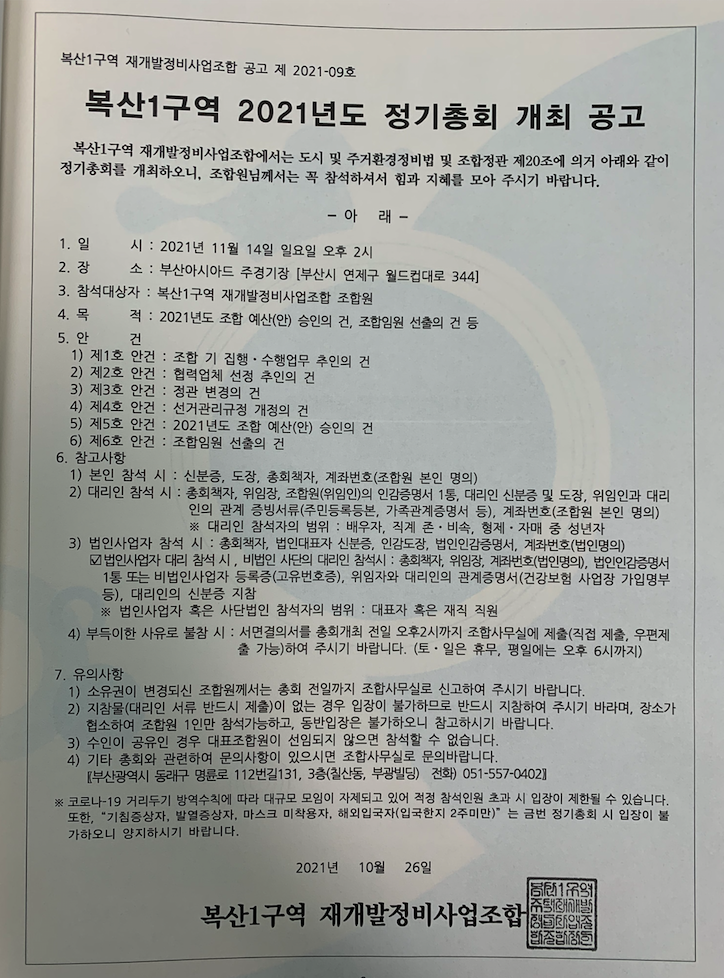 동래구 복산1구역 재개발 정기총회 소식과 최근 상황 그리고 물건을 업데이트 해 드리겠습니다.