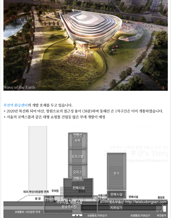 부전역 복합환승센터, 사상~해운대 대심도 등의 개발 호재가 함께 있습니다.