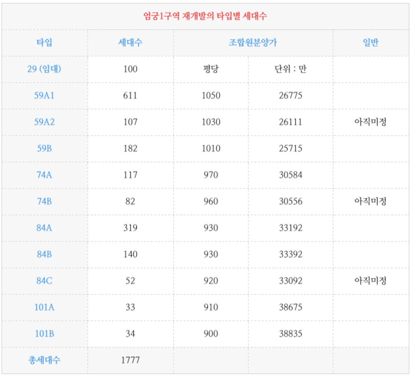 시공사와의 협의에 따라 대형 평형이 조금더 늘수 있어 일부 변동이 생길수 있을 것으로 보입니다.