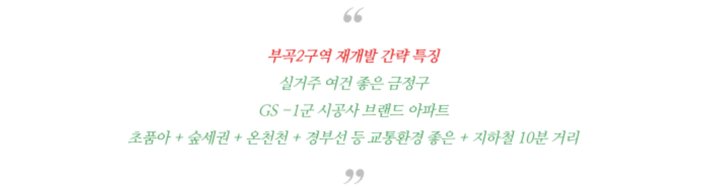 부곡2구역 재개발의 특징을 다시 한번 정리해 드립니다.