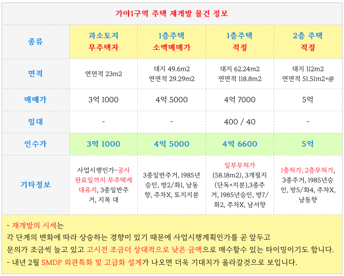 가야1구역 재개발 최근 상황과 매물을 업데이트해 드리겠습니다.