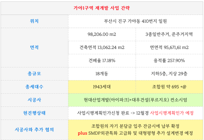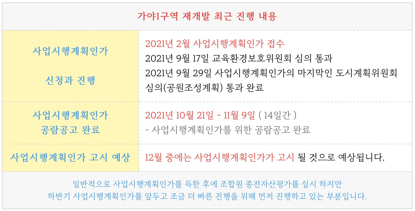 이제 사업시행계획인가를 앞두고 있는 가야1구역 재개발 역시도 현 시점 역시 좋은 타이밍 일수 있습니다.