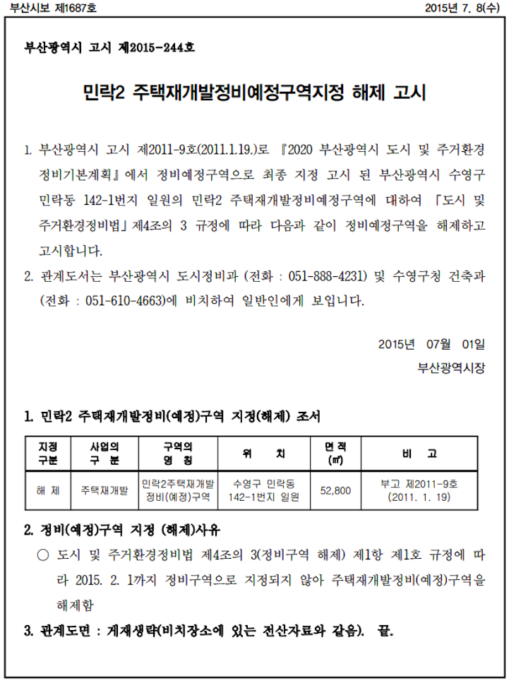 수영구 민락2구역 (가칭) 재개발 예정지의 지금까지의 진행 상황 등은 아래 페이지를 참고 부탁드립니다.