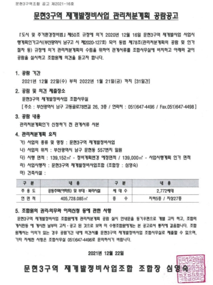 발빠른 문현3구역 재개발 관리처분계획인가 관련 소식입니다.
