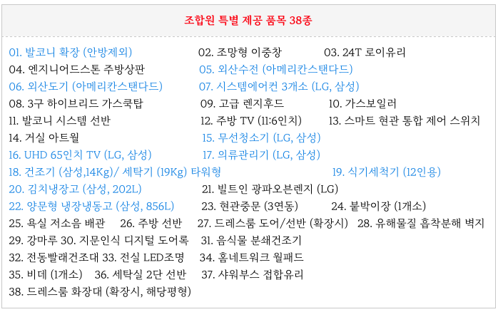 문현3구역 재개발의 힐스테이트 사업단의 건설 및 조합원 무상 제공 품목입니다.