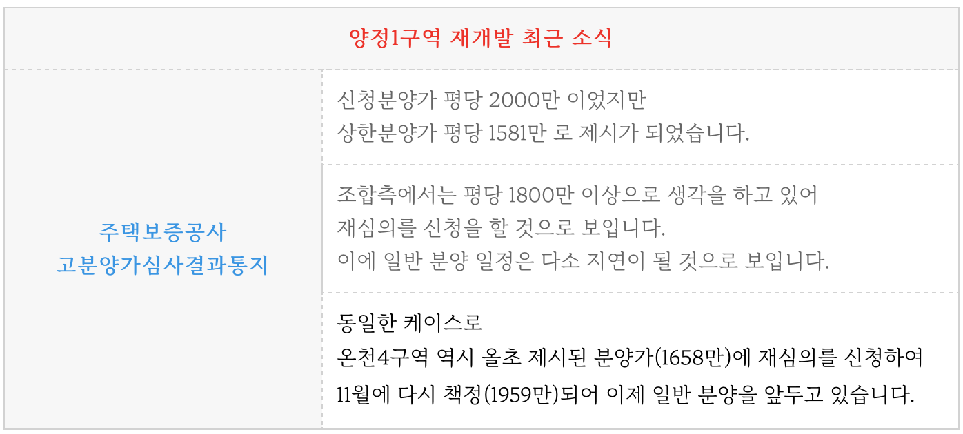 최근 주택보증공사로 부터 고분양가 심사결과가 통지 되었지만 예상보다 낮은 분양가가 나와서