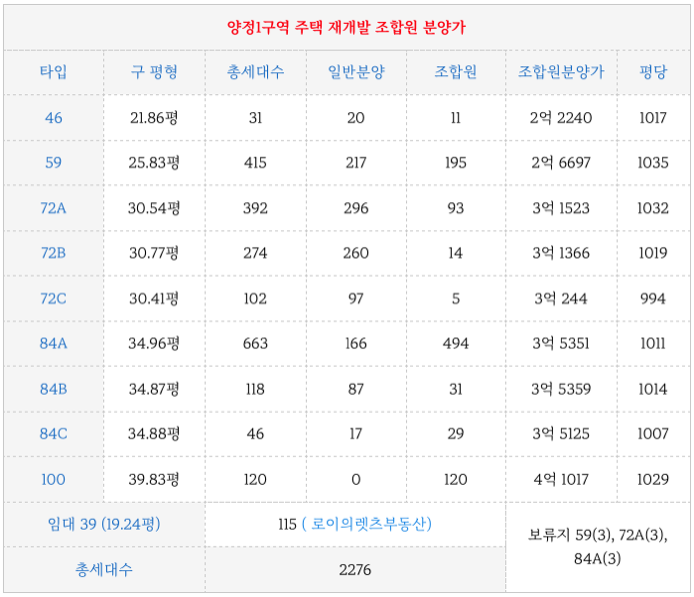 조합원 분양가는 평균적으로 1000만원 초반대로 상당히 매력적입니다.