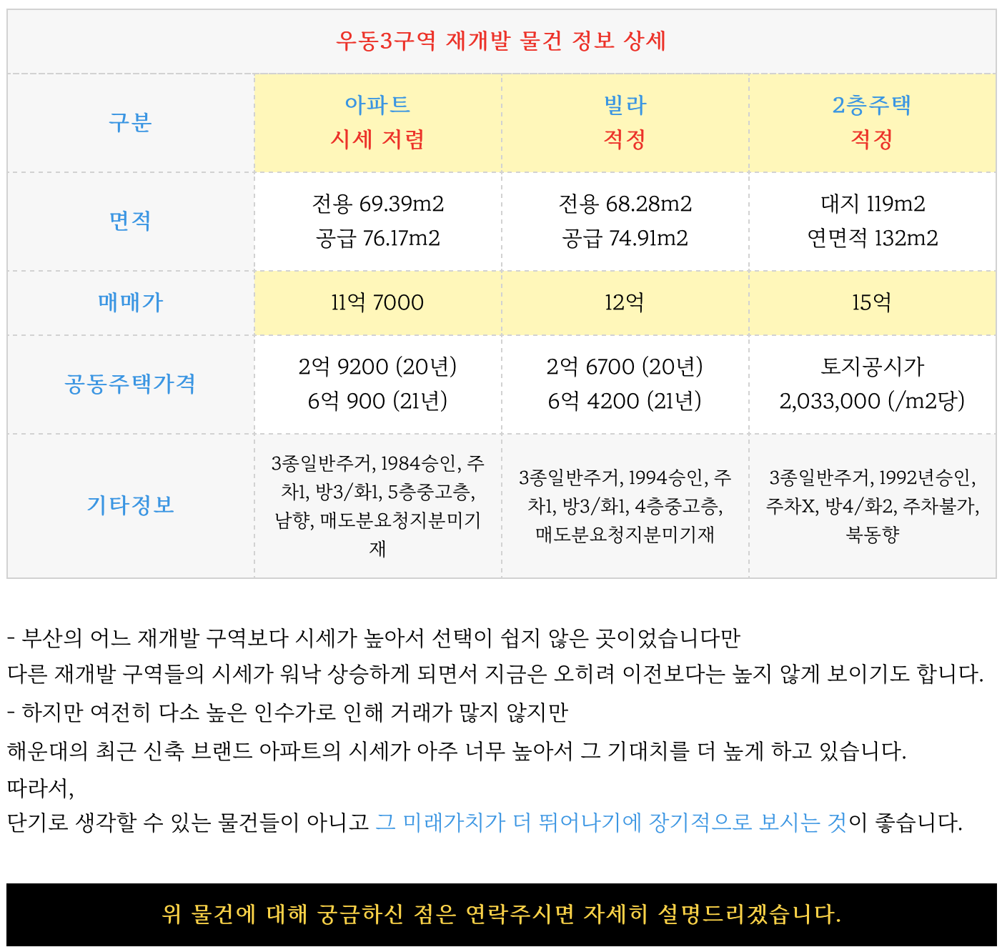 우동3구역 재개발 물건 ( 아파트 / 빌라 / 주택 ) 물건 소개 해 드리겠습니다.