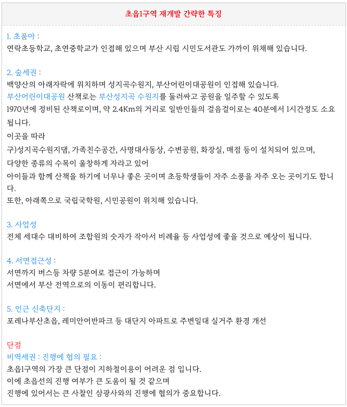 도심 숲세권 초읍1구역 재개발에 관심이 있으신 분들은 연락을 주시면 자세히 설명을 드리겠습니다.