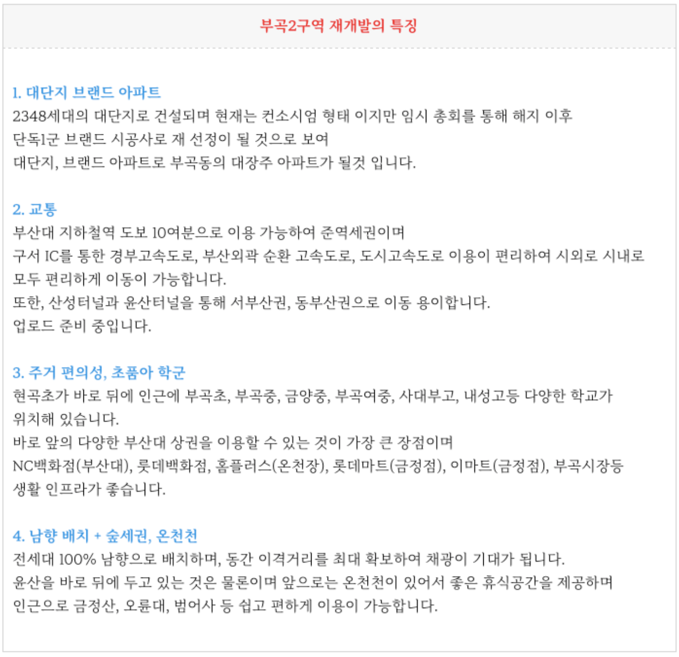 부곡2구역 재개발의 특징을 다시 한번 간략히 정리해 드립니다.