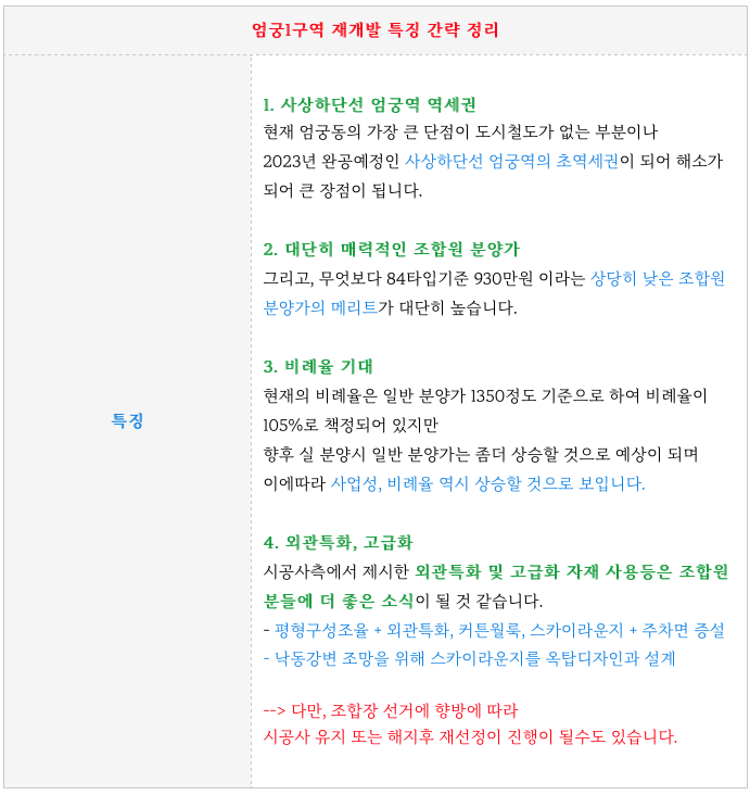 엄궁1구역 재개발의 특징을 간략히 정리하였습니다.