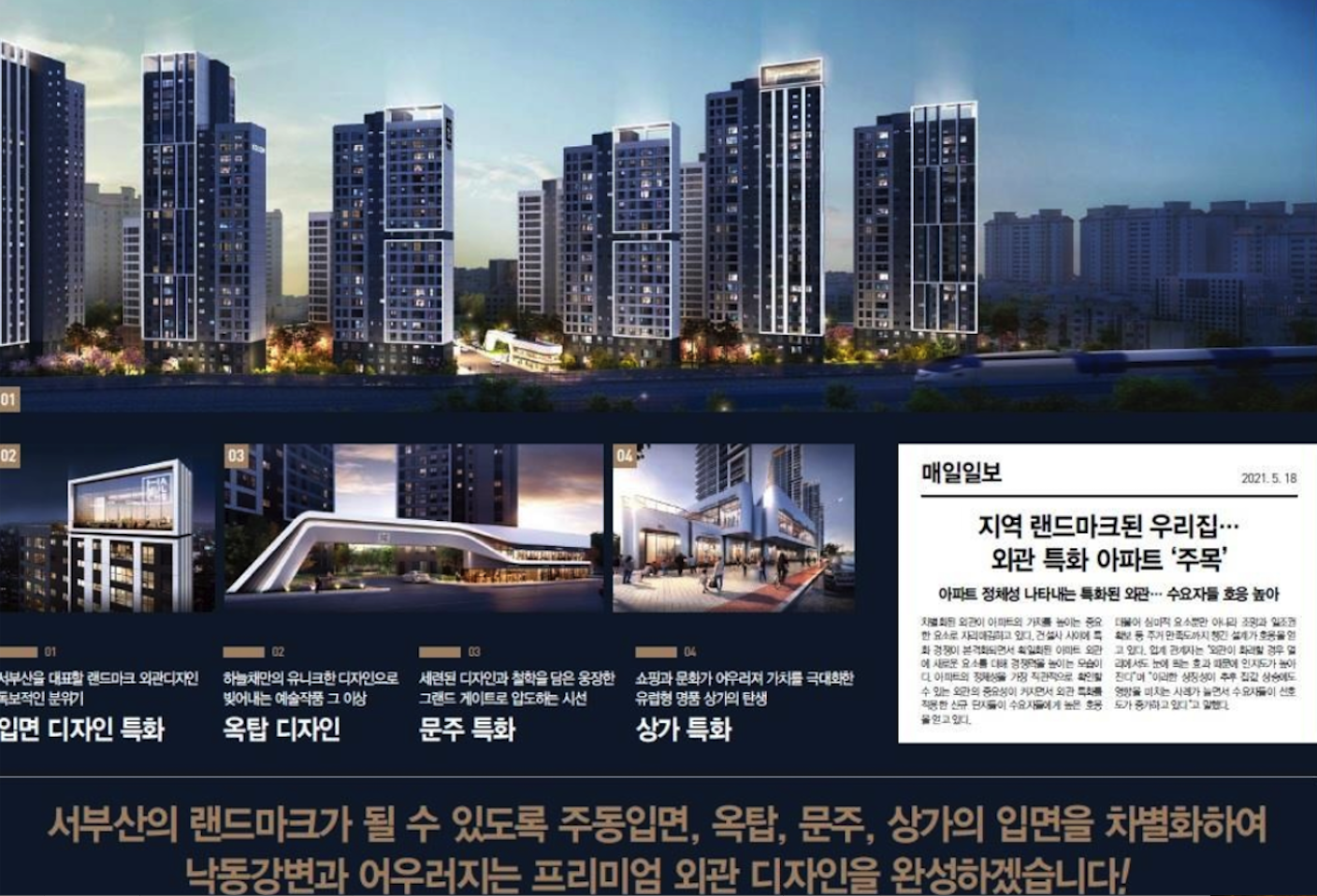 - 평형구성조율 + 외관특화, 커튼월룩, 스카이라운지 + 주차면 증설
