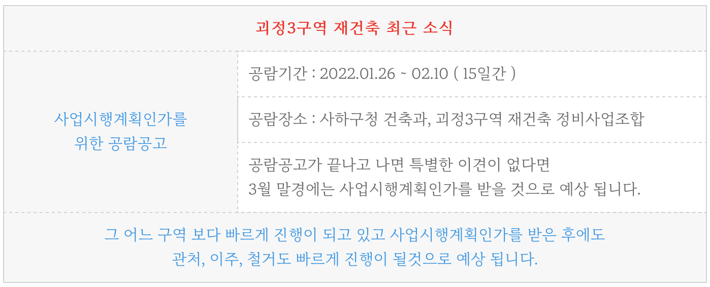 괴정3구역 재건축 최근 소식은 사시 고시를 앞두고 공람공고 고시가 된 부분 입니다.